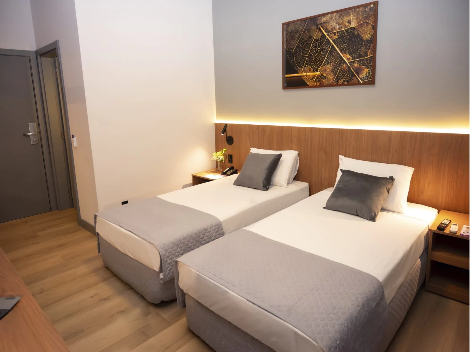 “Fomos muito bem atendidos por todos os funcionários do hotel. Achamos o café da manhã excelente, com uma boa variedade. Quarto amplo, limpinho e organizado. Uma pena não aproveitarmos a piscina do hotel, pois choveu o final de semana todo.”